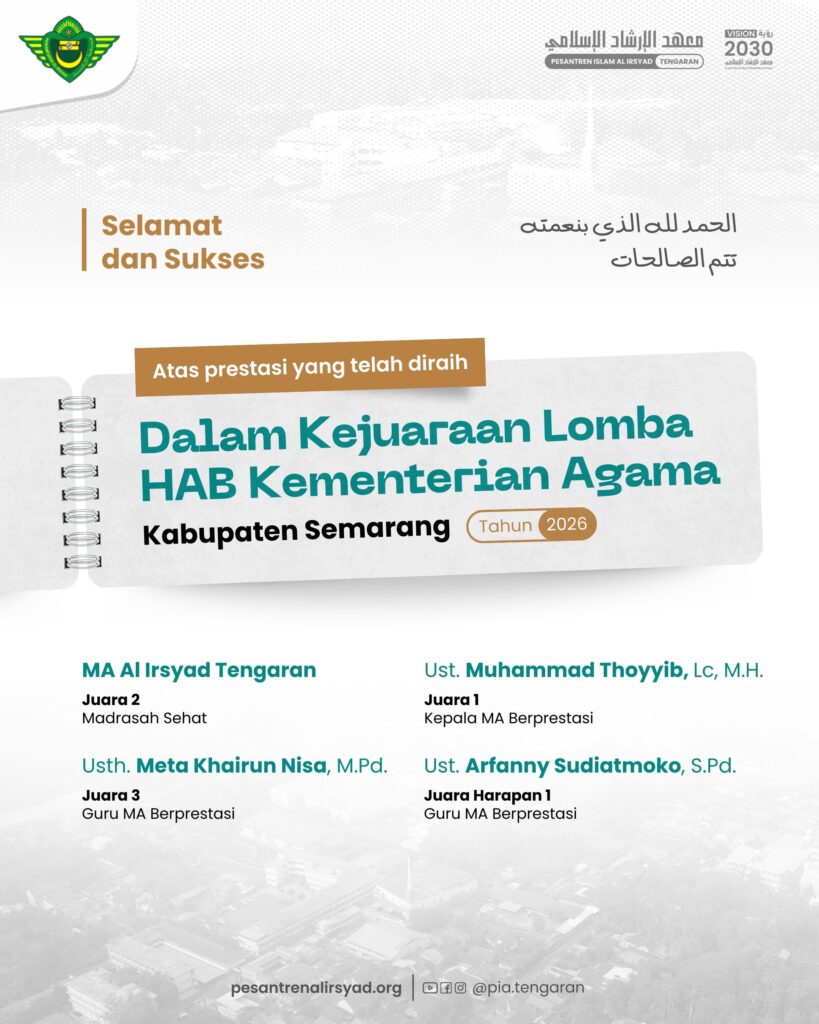 Semoga capaian ini membawa keberkahan serta semakin menguatkan peran Pesantren Islam Al Irsyad Tengaran sebagai lembaga pendidikan Islam yang unggul dan berprestasi.